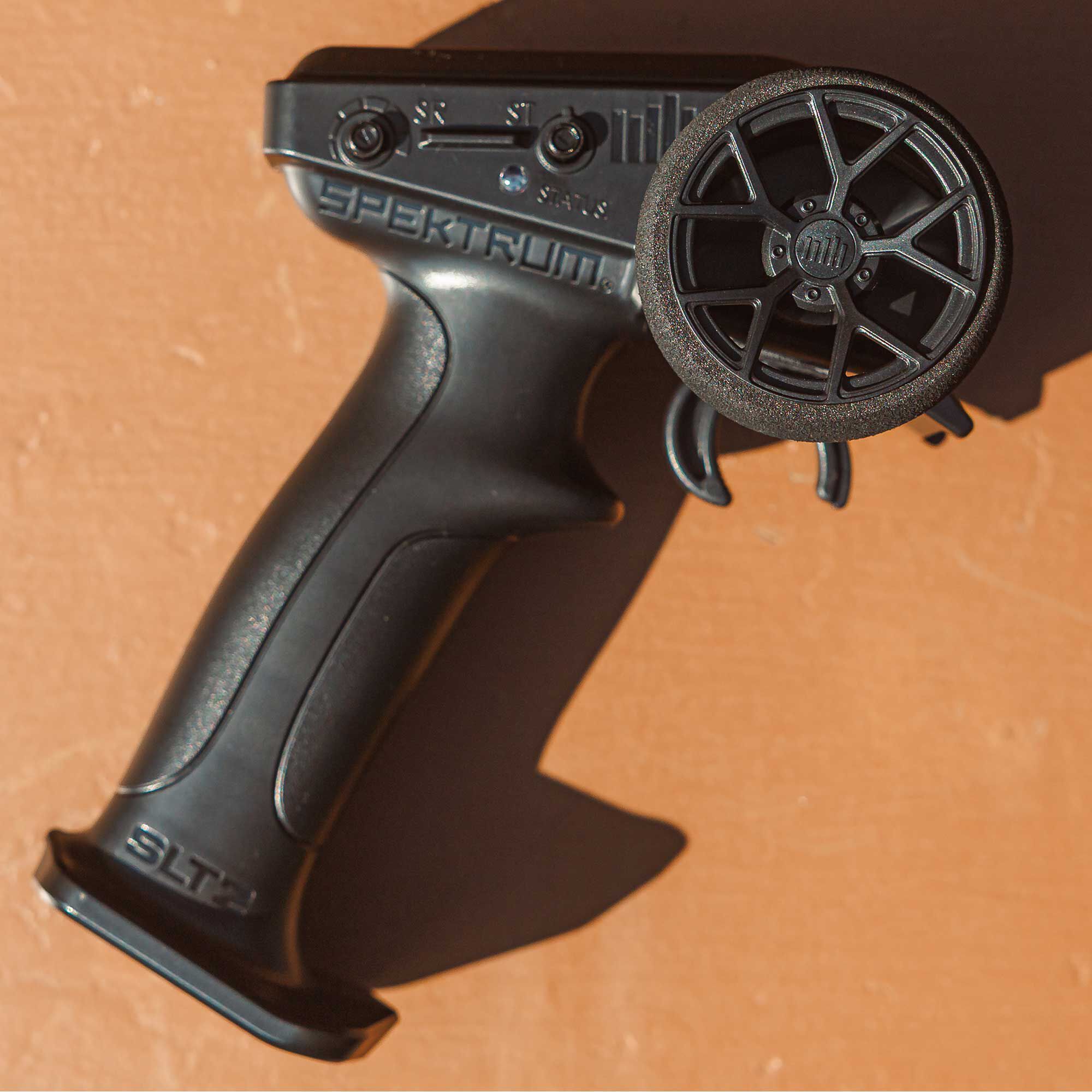 The included Spektrum SLT2 transmitter is perfectly balanced for fatigue-free bashing and has a foam wheel for precise fingertip control. Less experienced bashers can set the throttle limits at 50% or 75% until ready to use the buggy’s full speed potential.