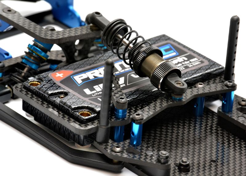 Quick adjust lateral mounted carbon fiber battery tray for the F1Ultra R5/R5CW series.