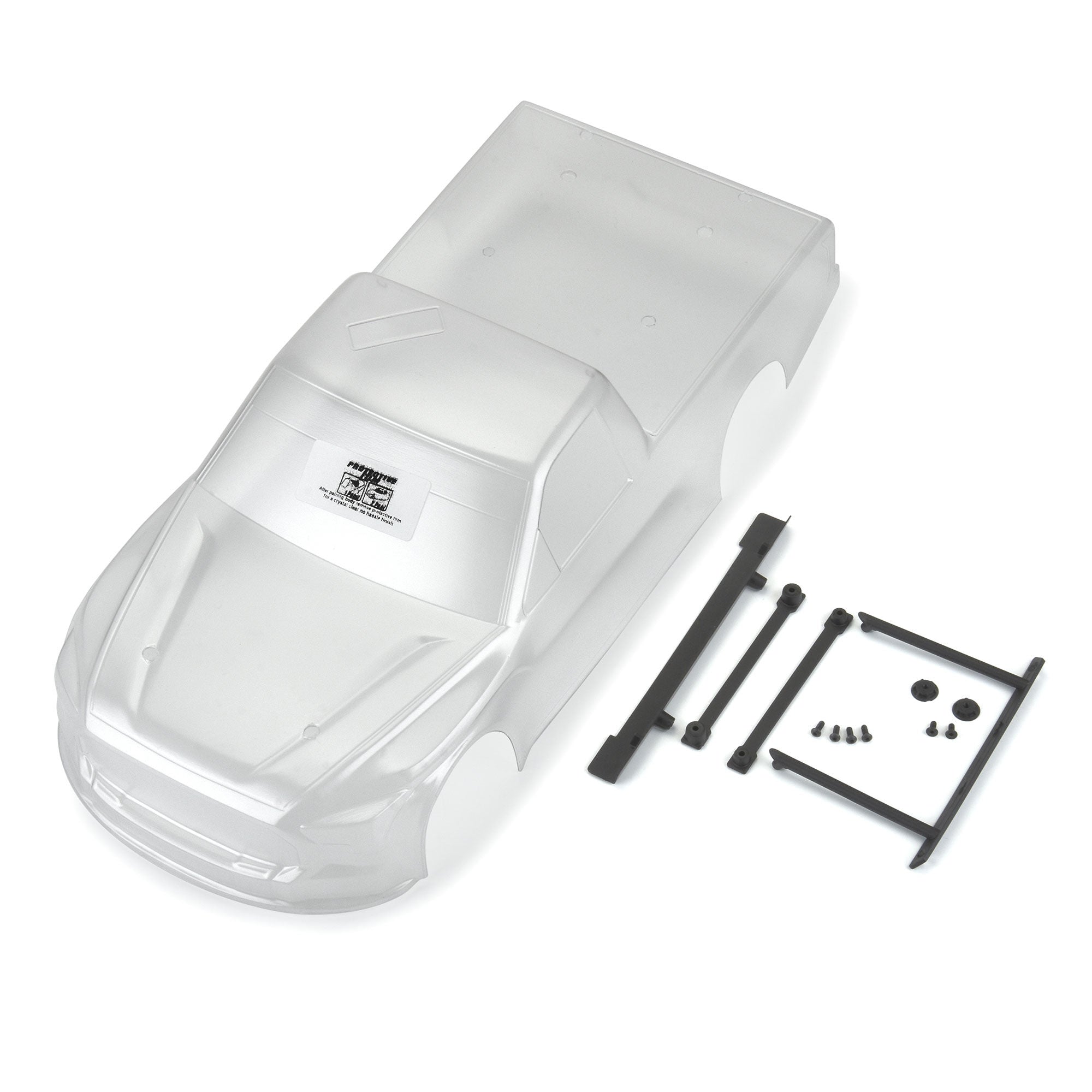 This body is Made in the USA from durable high-quality polycarbonate with paint-then-peel overspray film. Also included is a custom rear spoiler with mounting hardware to complete the body. Pair with Pro-Line Goodyear® Eagle Tires (PRO1025910) that have a larger sidewall for the correct appearance.