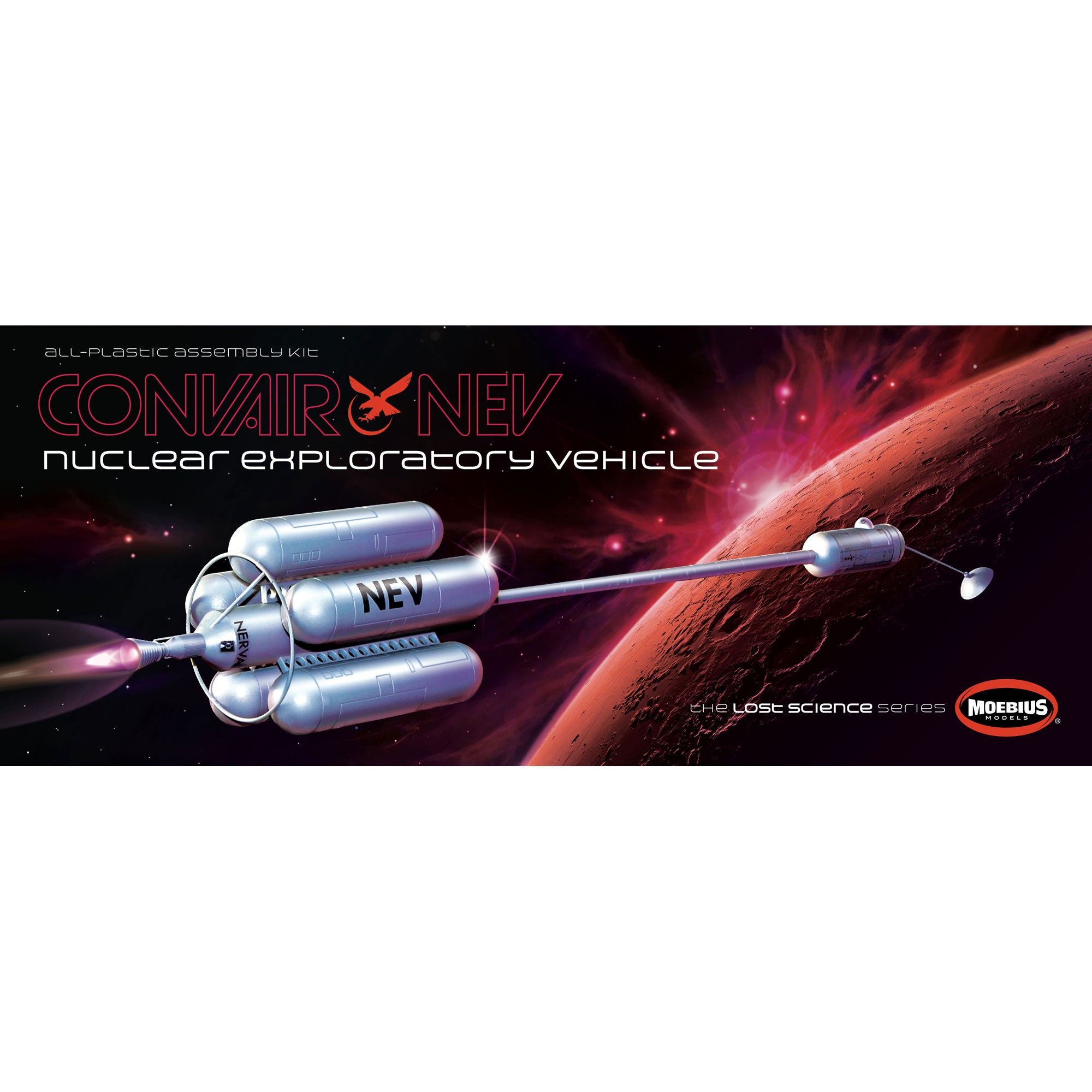 Based on the work of visionary rocket engineer Krafft Ericke, the Convair NEV features classic mid-century speculative spacecraft design. Measuring 19.75 inches long fully assembled, this precision-tooled styrene kit features a propulsion core surrounded by 5 fuel tanks and a forward crew compartment featuring a clear observation dome. This skill-level 3 kit includes a clear display base. The kit also includes decals and complete instructions. Kit requires paint and cement — sold separately.