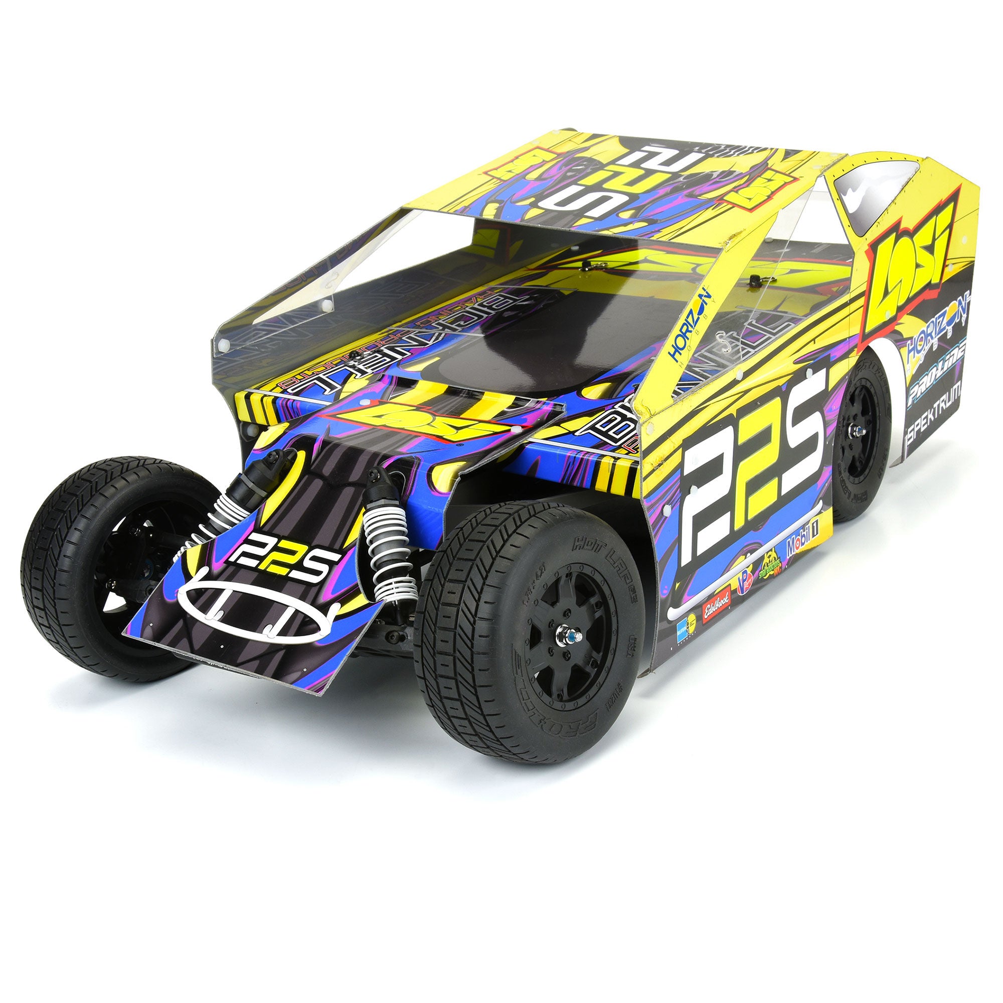 The Hot Lap SC features a deep, geometric grooved tread that provides increased forward bite, a predictable, smooth steering feel, and great tread cleanout. It's available in either MC (Clay) or M4 (Super Soft) compounds to suit your track's specific needs, and like every other tire that Pro-Line makes is proudly Made in the USA! Our high-quality closed-cell inserts are also included. Throw down the inside pass on your racing buddies with Pro-Line's all-new Hot Lap SC Dirt Oval SC Mod tire!