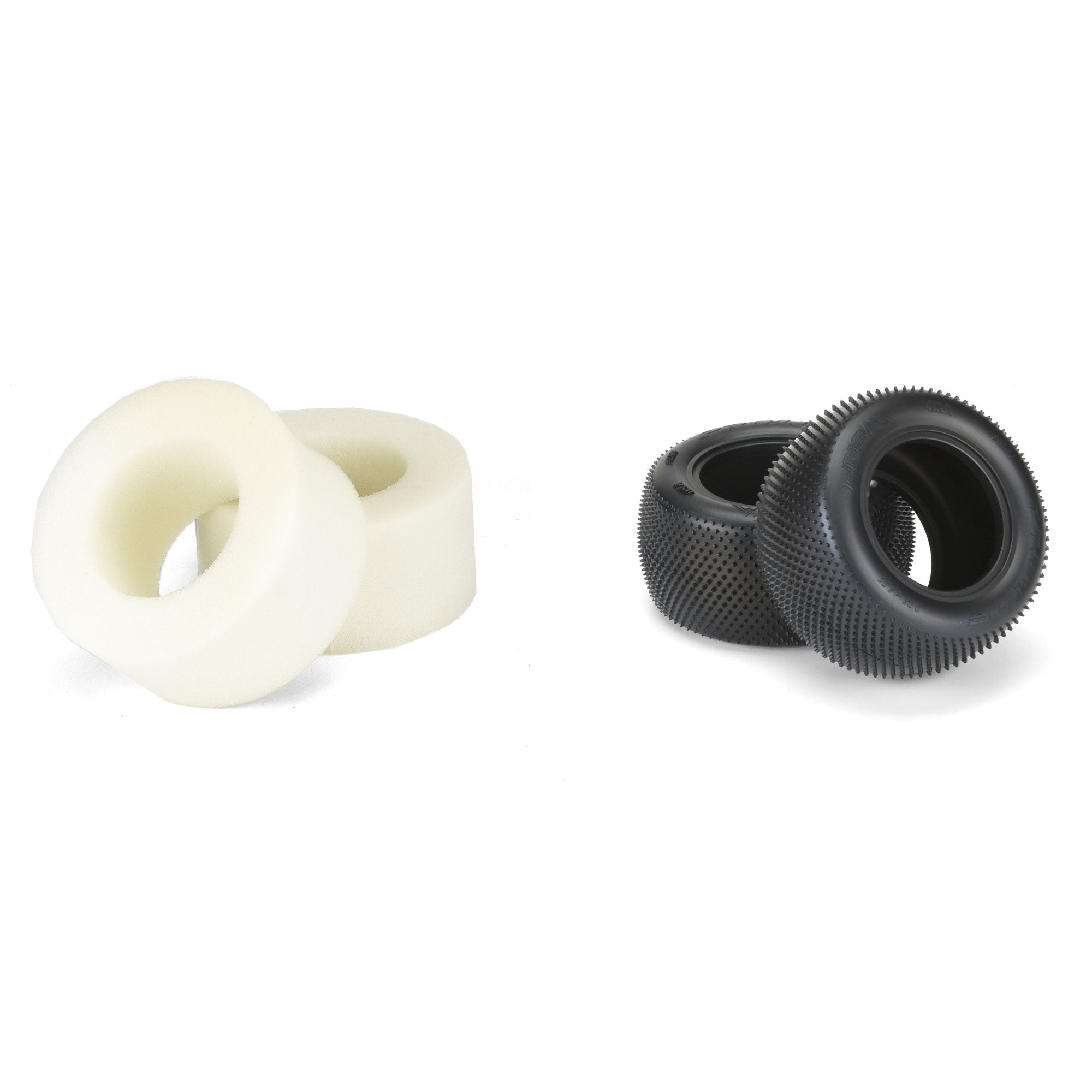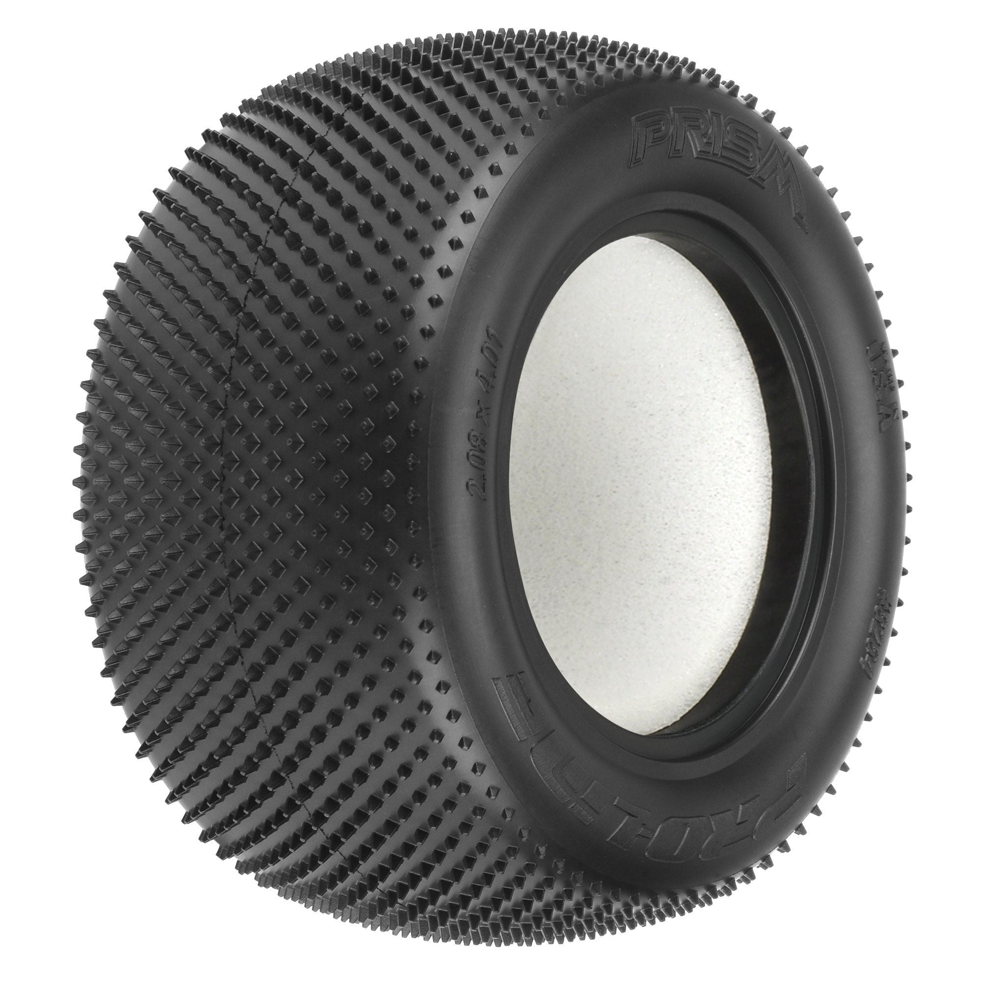 This is a pair of Prism Stadium Truck Rear Carpet Tires. Introducing the all-new Prism Carpet Truck Rear race tire! The Prism features 1,440 Ultra-Sharp Prism shaped Pins laid out in a unique pattern that grip the carpet better than Velcro®. The pins on the Prism are slightly smaller than the original Pin Point rear tire but there are many more of them, which results in faster and more consistent lap times. The Prism has been positioned with the knife edge pointed front to back and side to side for maximum grip and to stay sharp even as they wear down. The Prism T perfectly pairs with Pro-Line's Prism T Front (PRO8287) tire for ideal carpet racing performance. The Prism tire is destined to change the carpet racing scene; be the first one with the fastest carpet tire yet - Pro-Line's Prism!