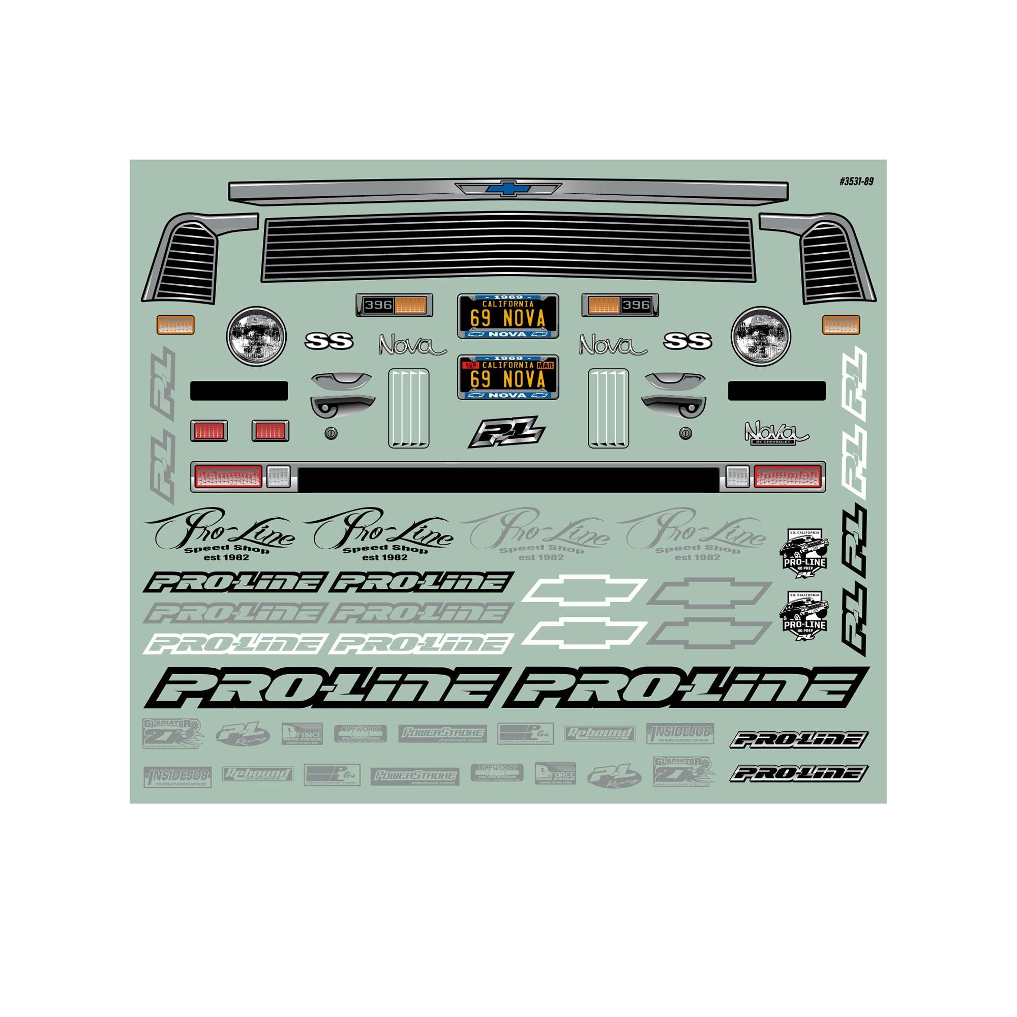 Pro-Line is proud to introduce the iconic 1969 Chevrolet® Nova™ body specifically designed for the growing SC Drag Racing scene! This body is perfect for No-Prep Drag Racing and features an ultra-realistic one-piece body design and includes an optional add on spoiler to complete the drag racing look. No more messing with separate nose pieces to achieve scale front end detail!