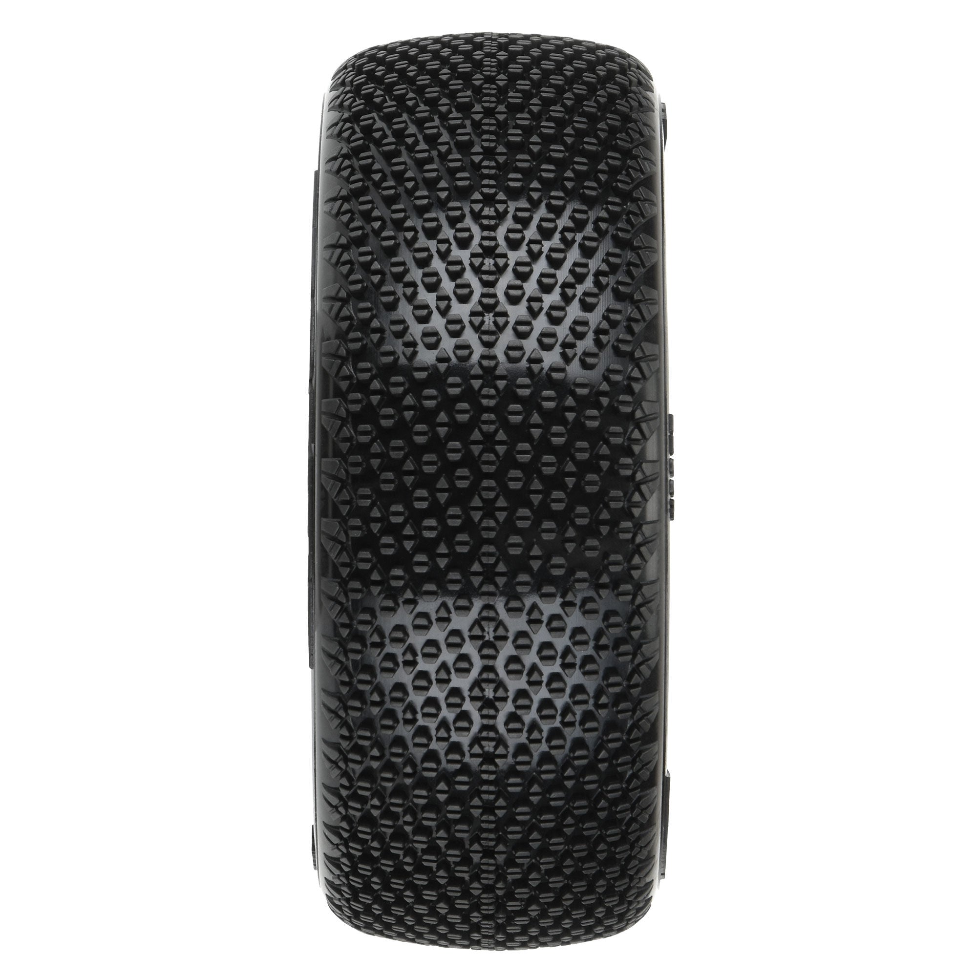 Valkyrie is constructed on Pro-Line's latest generation carcass profile that utilizes a single arc to create the sidewall geometry, then transitions from the sidewall to the crown with a larger radius resulting in a rounder and less edgy appearance. This carcass provides a tailored fit to the wheel and insert package, making mounting a breeze. Racers can expect the Pro-Line Valkyrie tires to deliver improved consistency, drivability, and durability.
