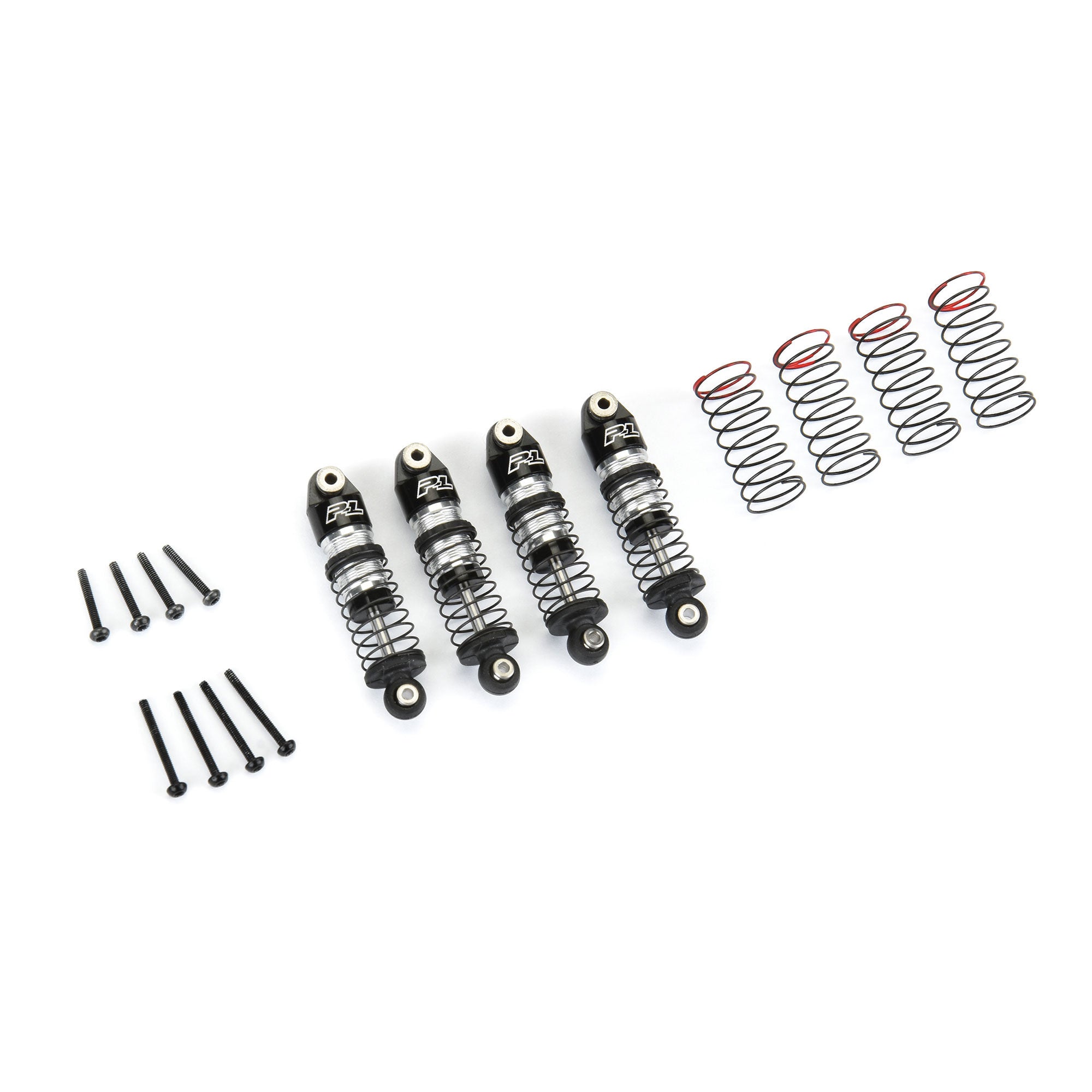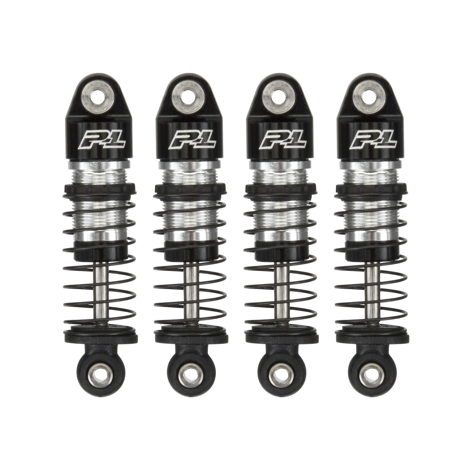 Two sets of springs are included in the Big Bore Scaler Shock set. The shocks come pre-assembled with a standard spring rate perfect for those stock or close-to-stock rigs. The optional stiffer springs (marked with red paint) are ideal for rigs with heavier ABS/hard bodies, such as the Axial SCX24™ Bronco (AXI00006T1). Don't miss out on the coolest looking and best performing SCX24™ shocks on the Planet, Get your own Pro-Line Big Bore Scaler Shocks today!