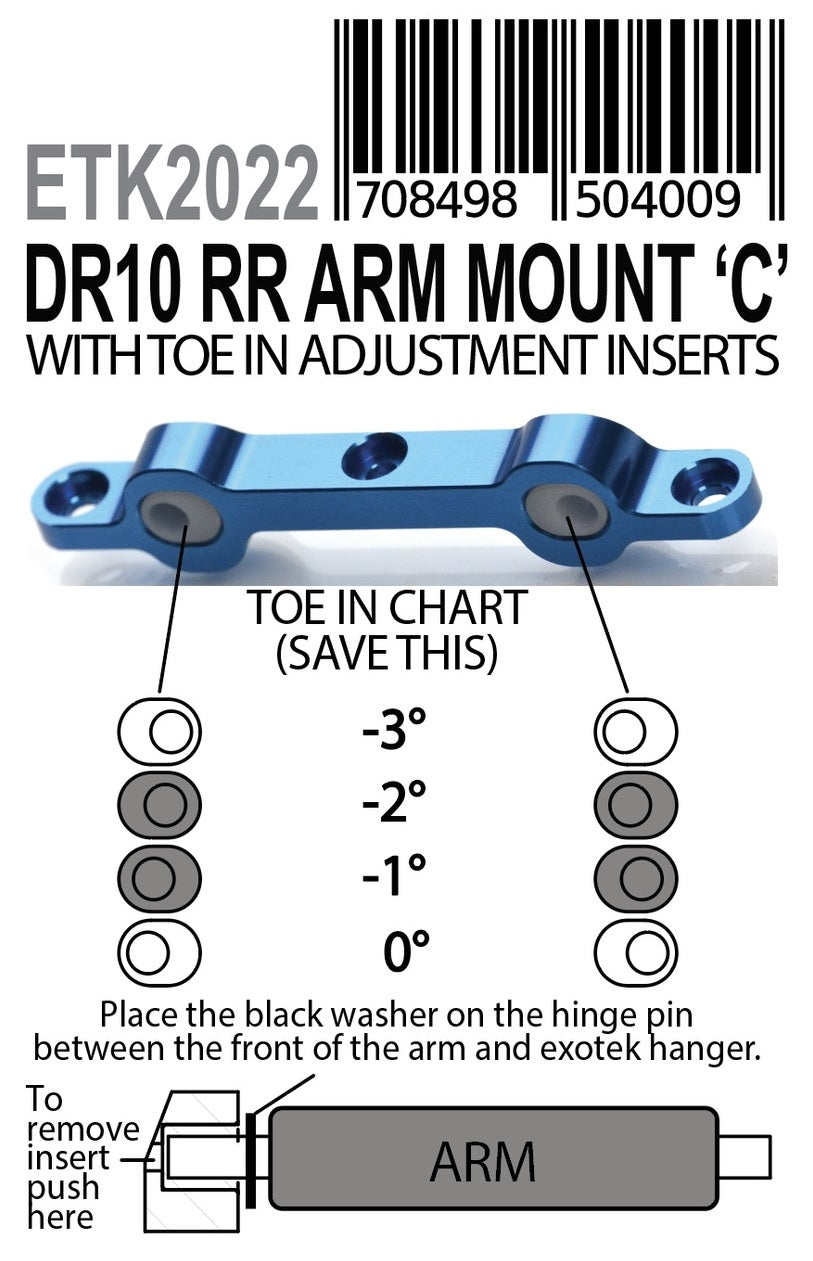 DR10 HD Rear Arm Mount (C) with 0°, -1°, -2°,- 3° Inserts