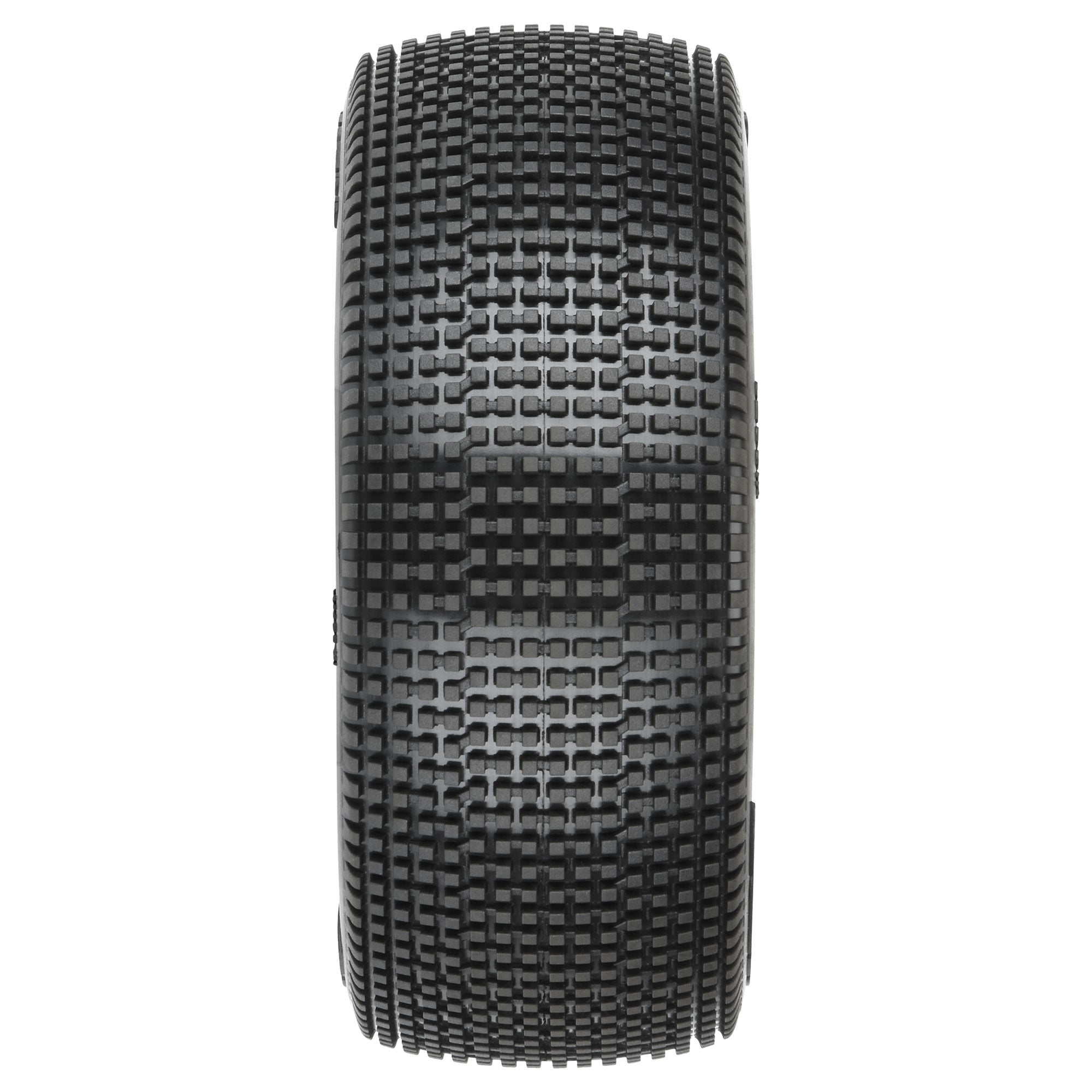 The Convict 1/8 Buggy race tire has been a go-to, long-lasting race tire perfect for main events. A lightweight and more versatile version of the popular world-championship-winning Fugitive, the Convict features strategically placed small connecting bars that improve the stability of the tire tread, which is especially important when used in softer compounds. Now, the proven Convict pattern is available as the Convict 2.0, constructed on Pro-Line's latest generation carcass profile that utilizes a single arc to create the sidewall geometry, then transitions from the sidewall to the crown with a larger radius resulting in a rounder and less edgy appearance. This carcass provides a tailored fit to the wheel and insert package, making mounting a breeze. Racers can expect the Convict tires to deliver improved consistency, drivability, and durability.