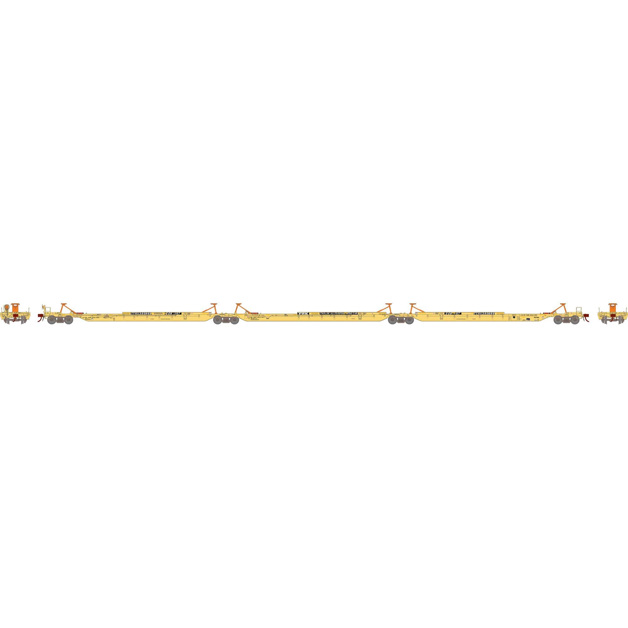 The prototype for our model is based on a Trinity-built car owned by the TTX Company. These 70-ton cars (TTX class RAF30A) numbered TTRX 360817-361116 first appeared on the rails in the late 1990’s. The Athearn model is faithful to the prototype allowing modelers to load a variety of trailers and containers.