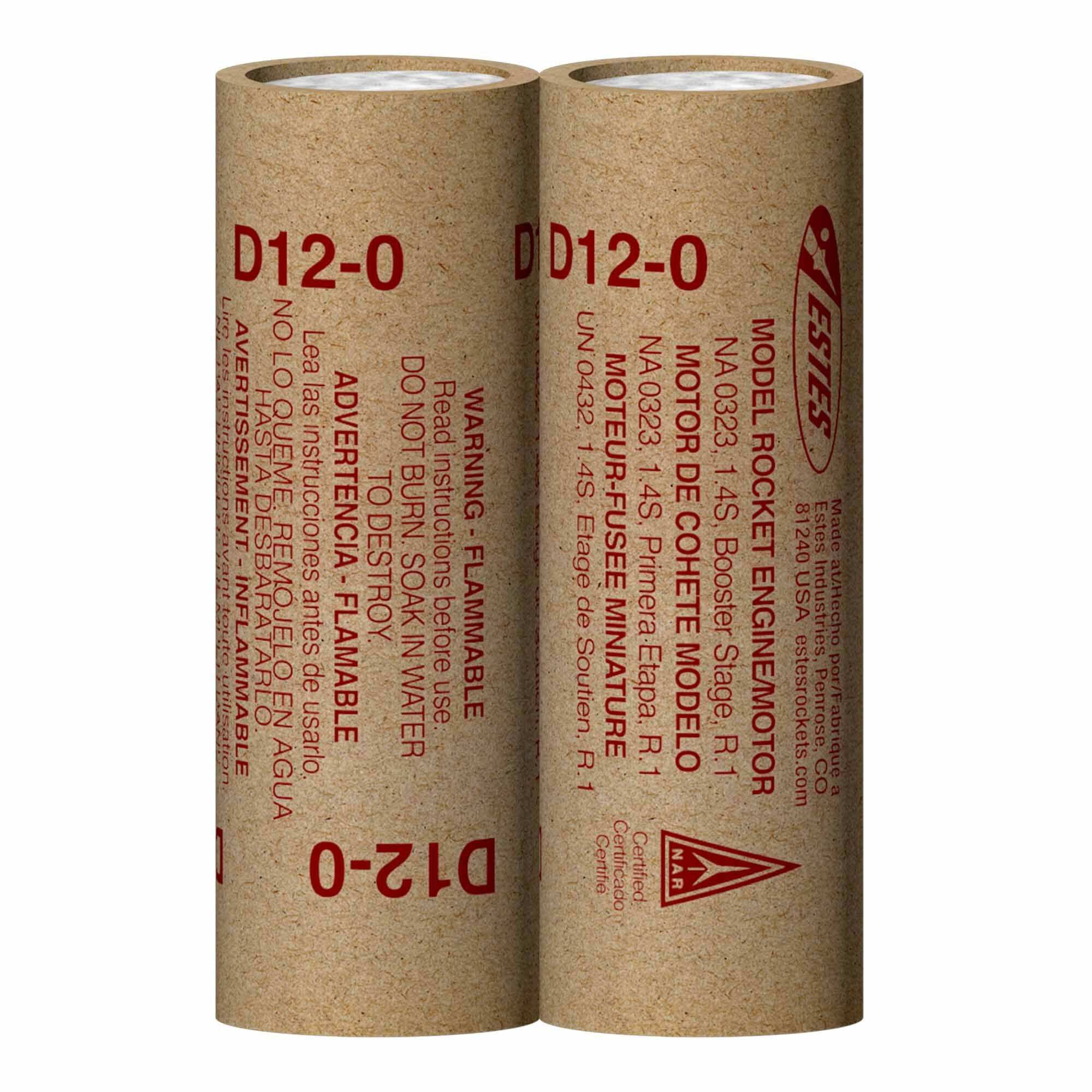 The Estes D12-0 is a booster stage engine designed for model rocket flight, and must be used with a standard engine. This engine is for flights in rockets weighing less than 14 ounces, including the engines. Each package includes 2 engines, 2 starters, and 4 starter plugs.