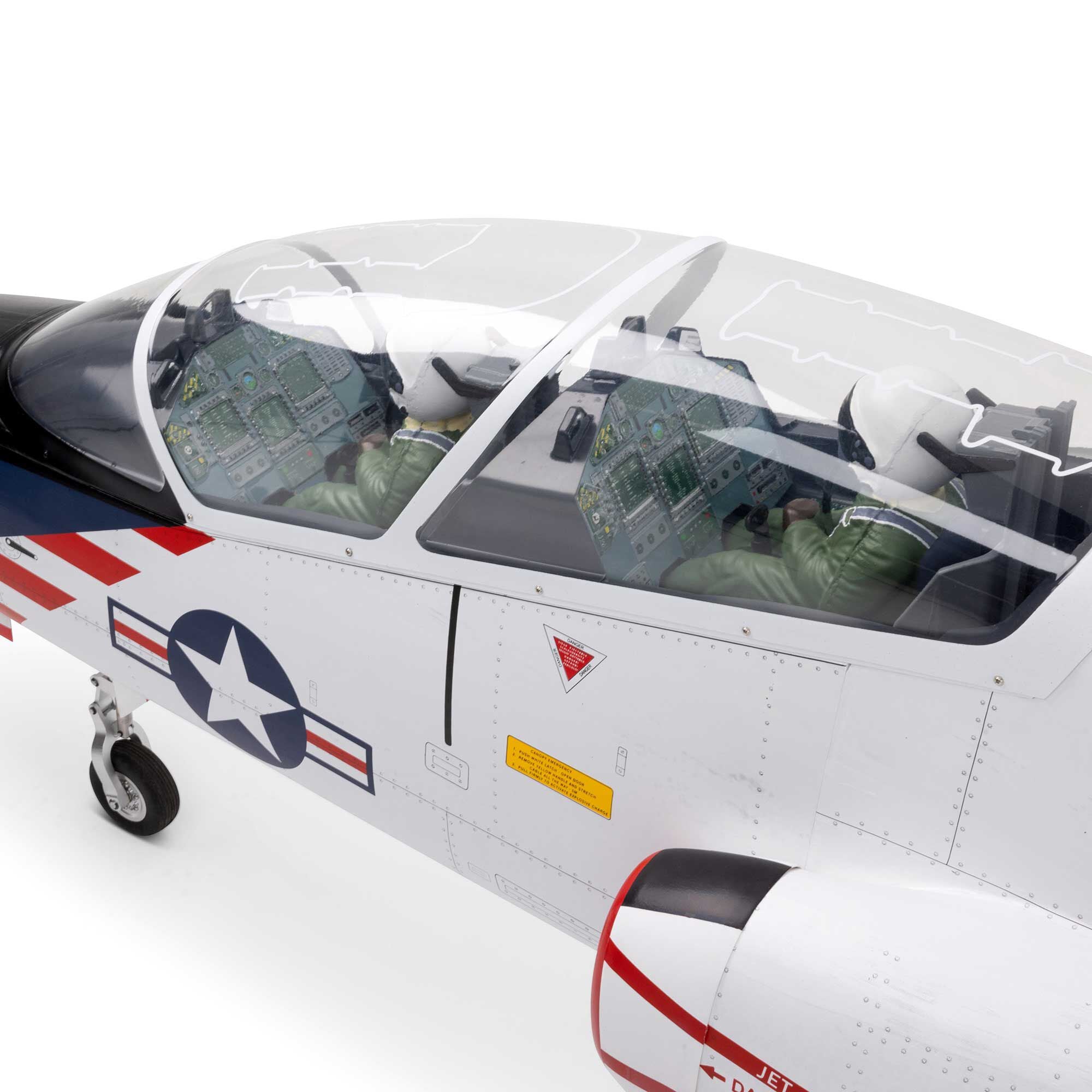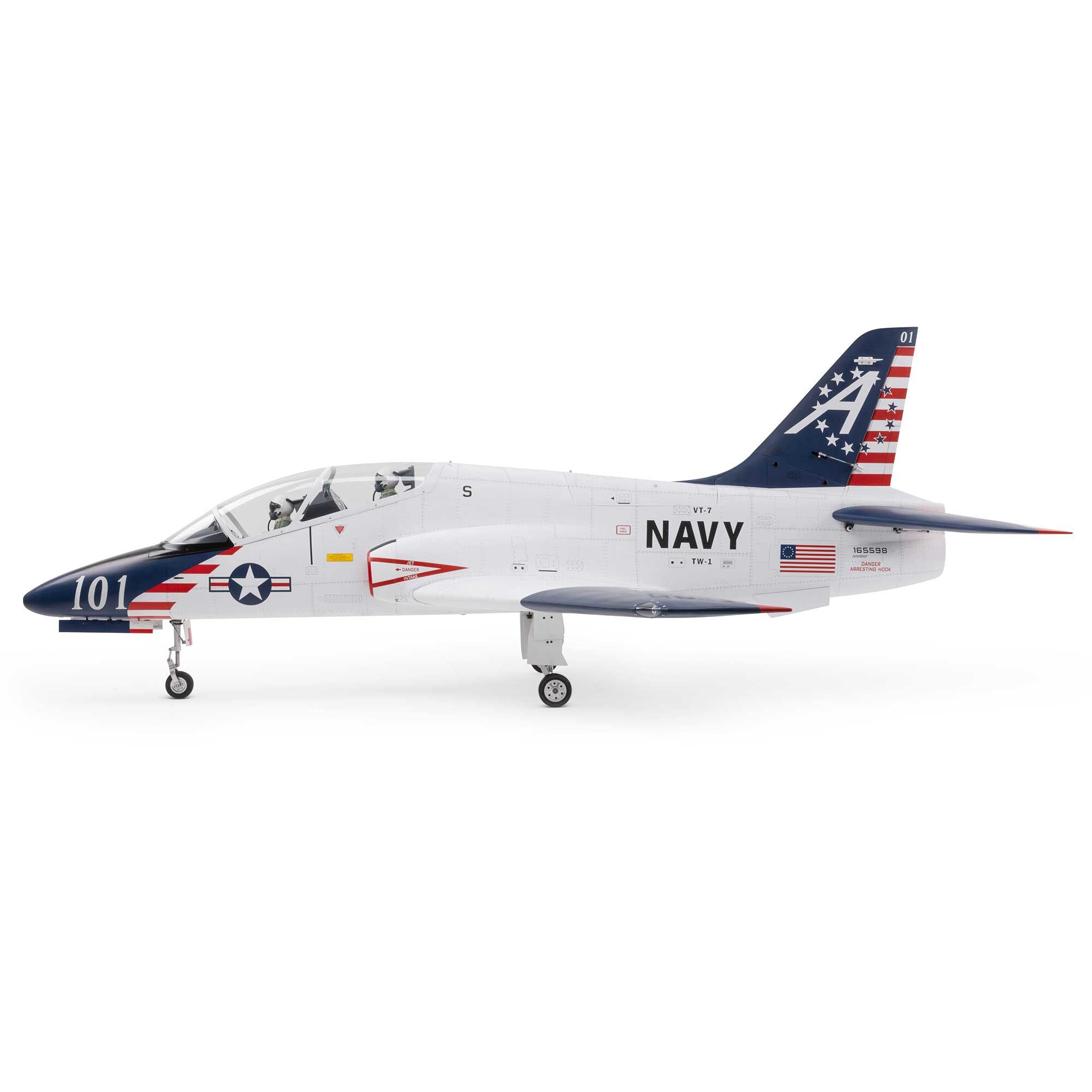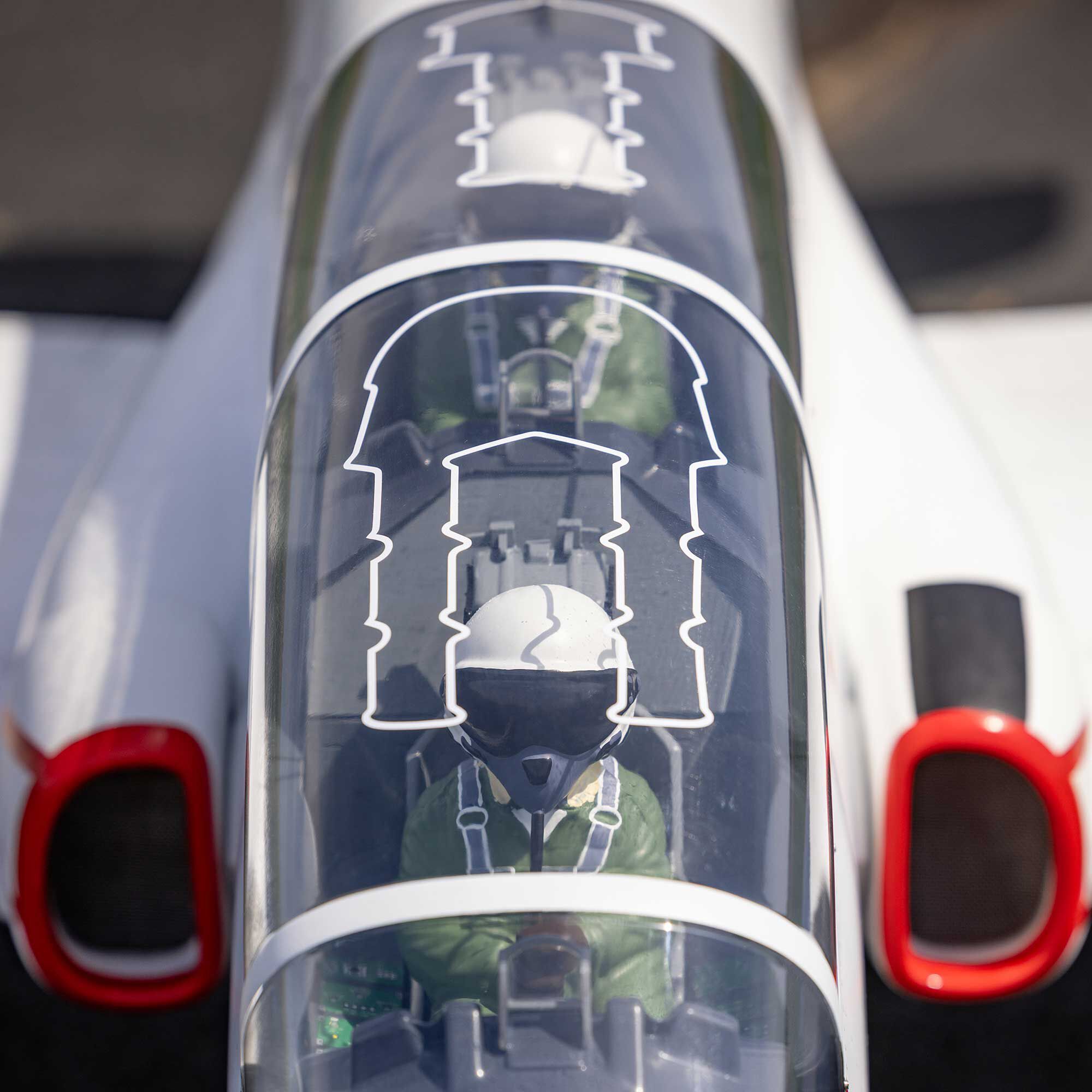 Large top hatches grant rapid access to the turbine, fuel system, and electronics. Scale enthusiasts will appreciate the printed VT-7 “Betsy Ross” factory-applied trim scheme with panel line, hatch, and rivet details. Inside, a detailed cockpit houses pilot figures, molded seats and a 3D instrument panel under a clear canopy.