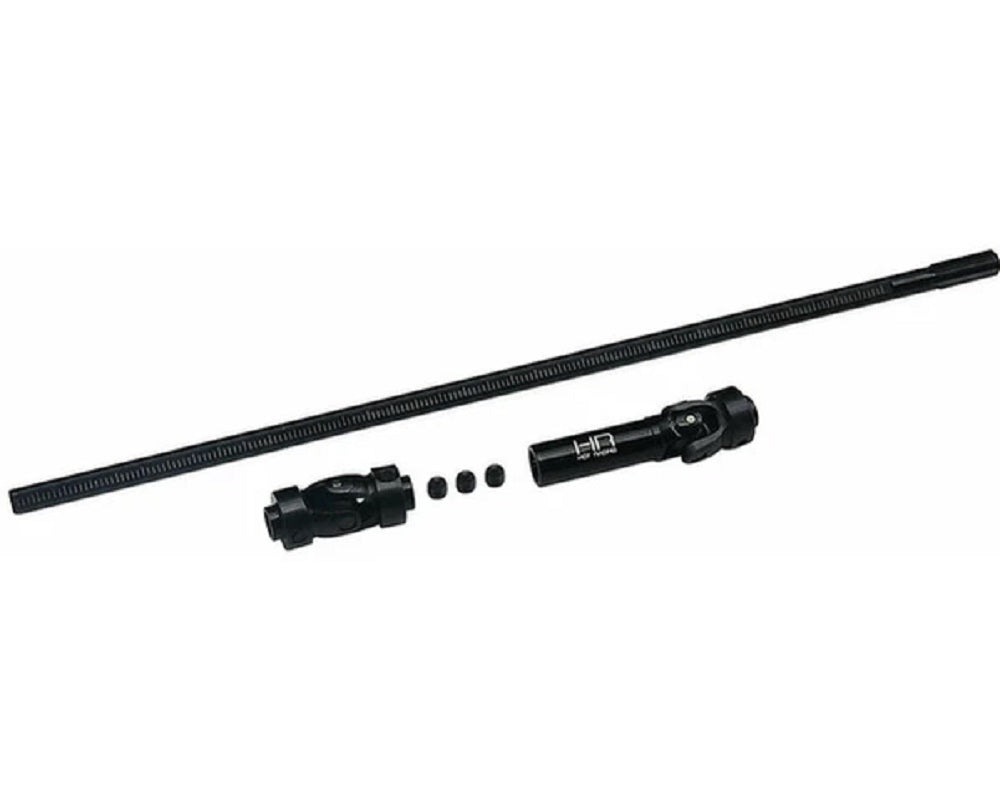 Finding the perfect length center drivelines can be challenging, especially during the initial stages of a custom build. Hot Racing's cut-to-length shafts offer a straightforward solution. Easily customize the shaft length using tools like a hand saw, moto-tool with a cut-off wheel, or an angle grinder with a cut-off disk. These shafts feature u-joints that closely resemble full-scale counterparts.