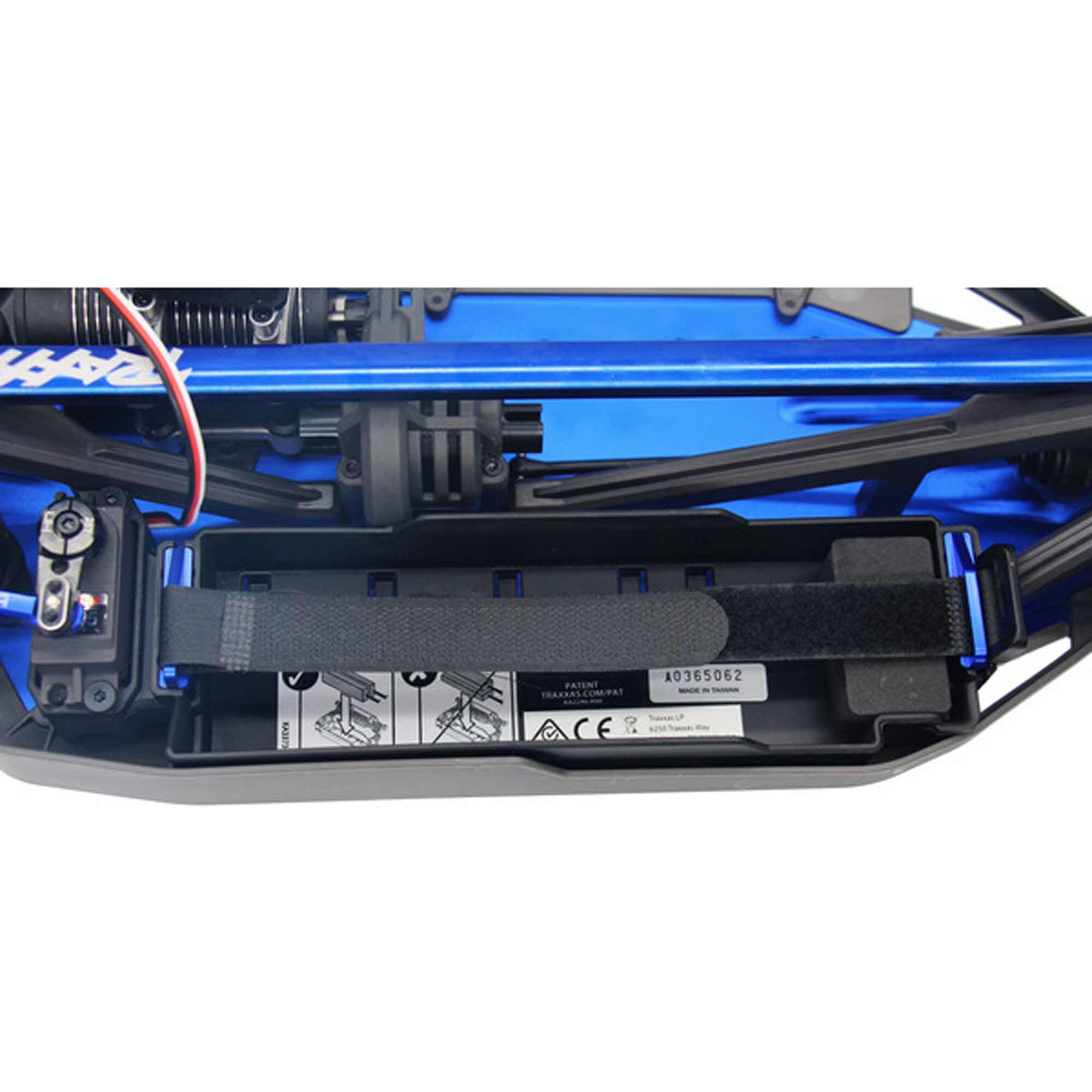 The Hot Racing aluminum battery hold-downs allow you to use taller batteries in your Traxxas Sledge.