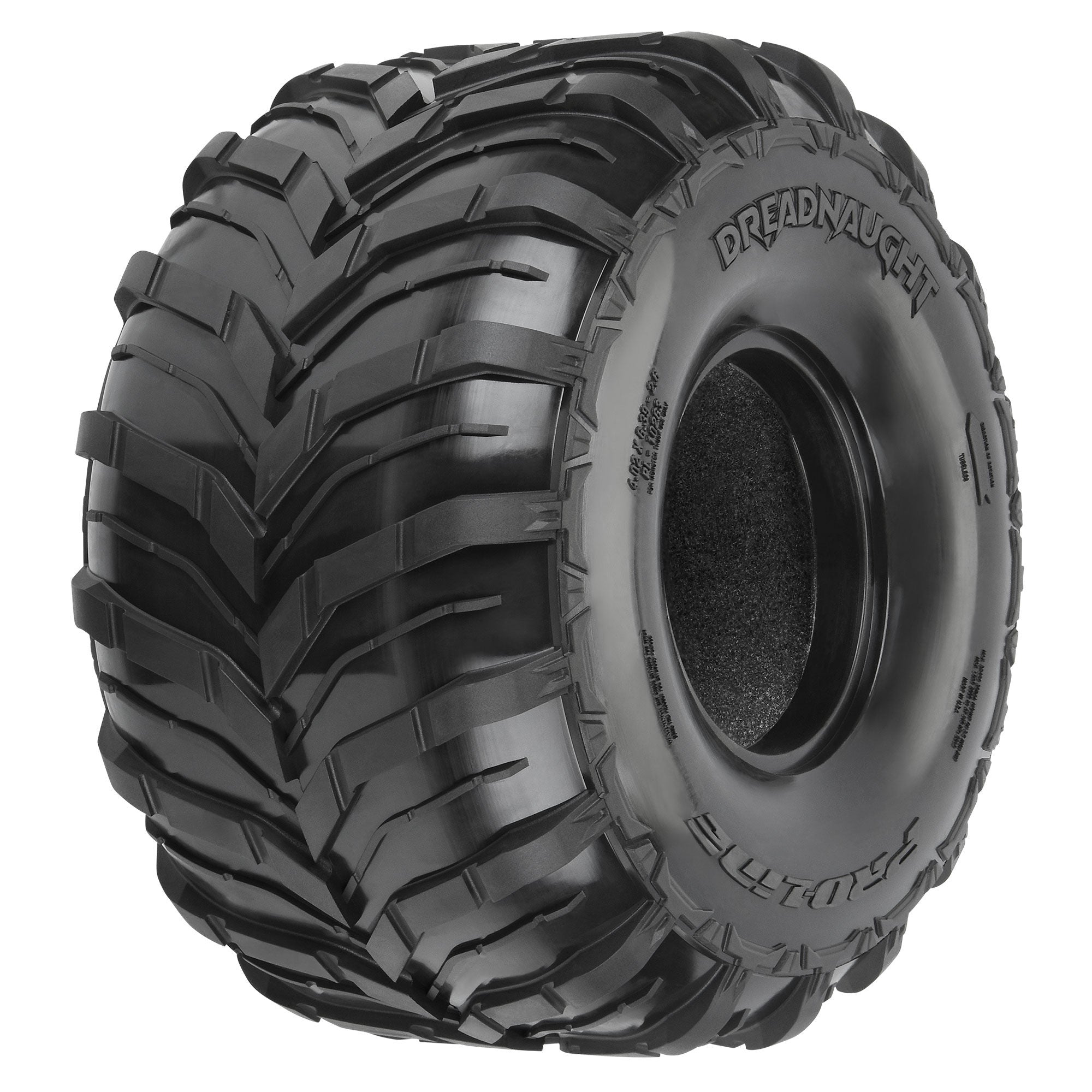 This is a pair of Dreadnaught Tires for the Losi® LMT 2.0. Pro-Line has you covered with high-performance Dreadnaught tires made specifically for your truck! The Dreadnaught tires feature sipes inside the aggressive chevron-style tread for exceptional scale realism and increases forward bite on any surface. As you should expect from Pro-Line, the Dreadnaught tire is made from soft and sticky rubber that will give your LMT 2.0 maximum acceleration with stunt wheelie-popping traction. Get your own set today!