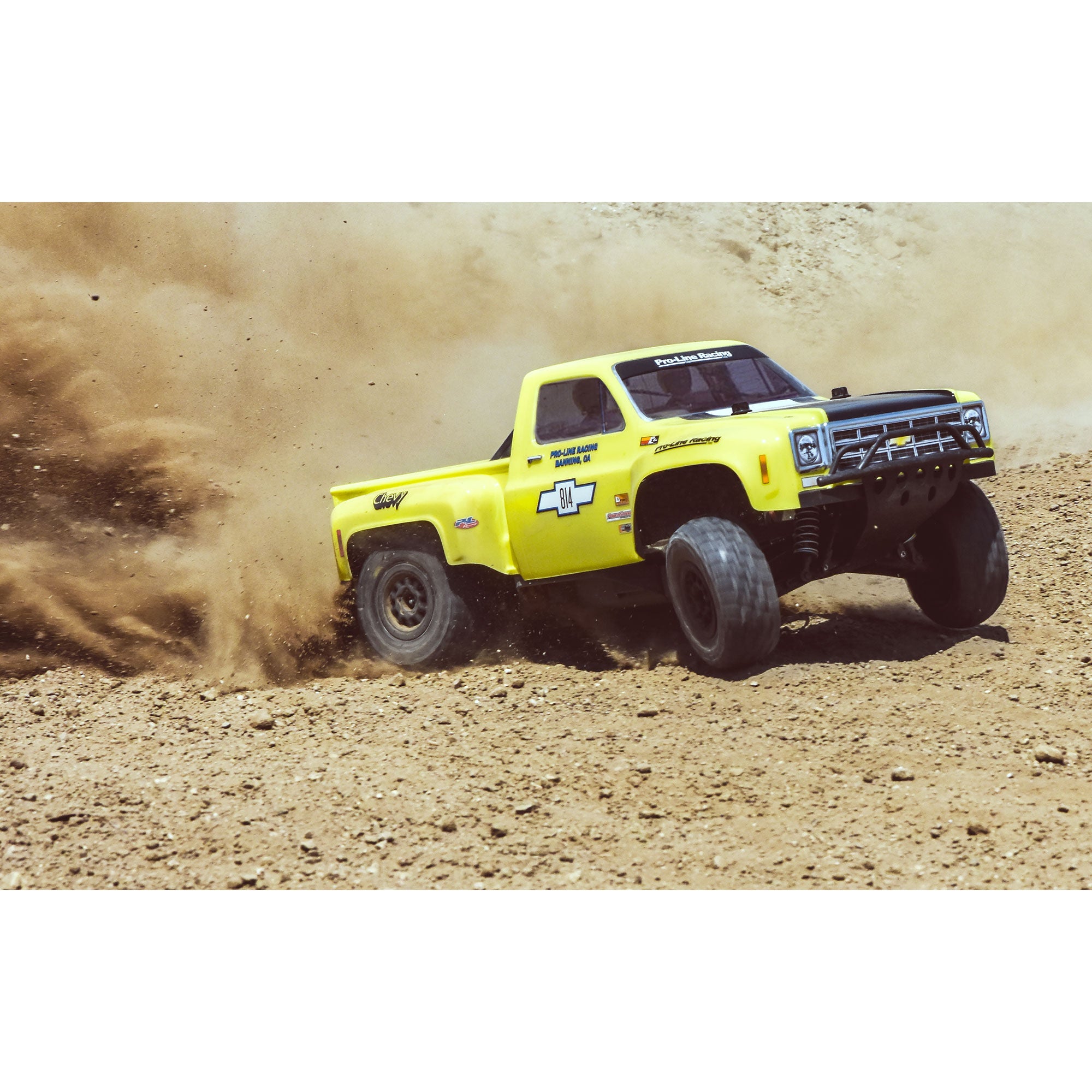This is a 1978 Chevy® C-10™ Race Truck Clear Body for Short Course. Pro-Line now has the ultimate licensed Chevy® body - the 1978 Chevy® C-10™ Race Truck! This step-side classic truck body features large, full race fenders and styling that will separate your truck from the rest. This well-known and recognizable truck body style won many desert races in the mid to late 70's and was driven by off-road legends Parnelli Jones, Rick Mears and Walker Evans making it the ultimate dream truck to many race fans. The body includes fully licensed Chevy® grill, headlight and taillight decals to complete the look. Give your Short Course Truck the tough look it deserves with Pro-Line's new Chevy® C-10™ body!