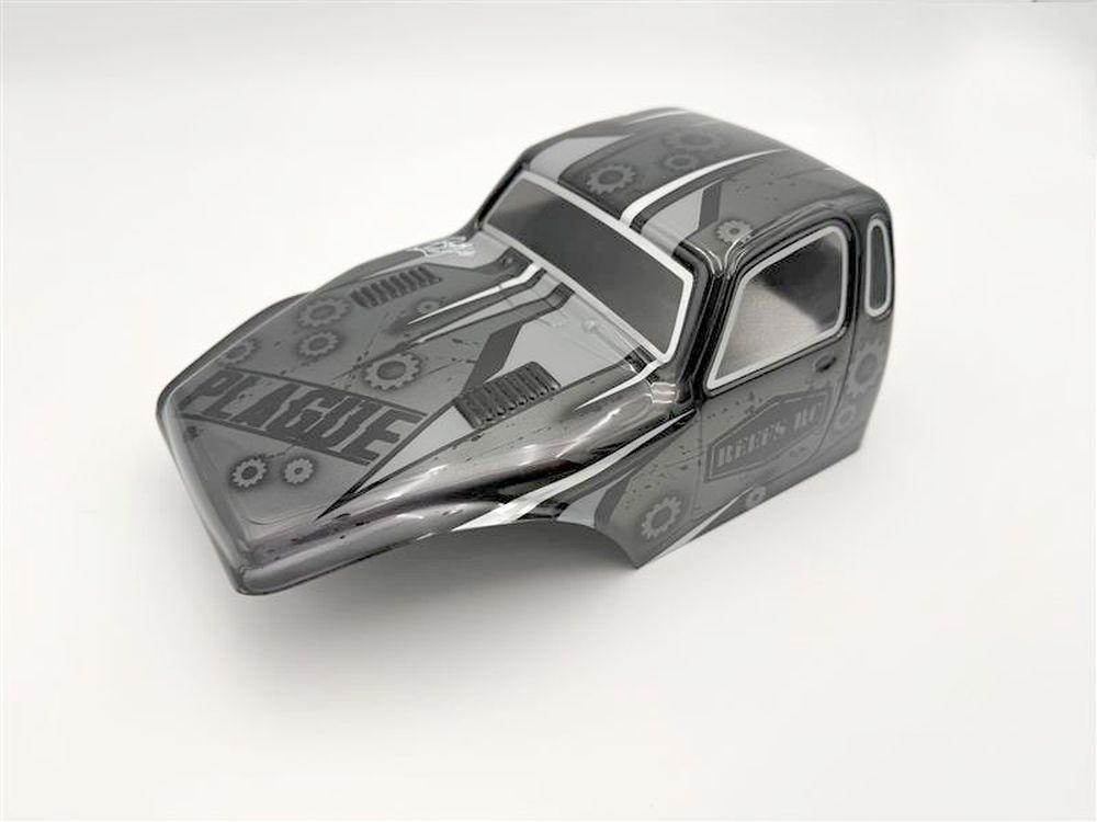 The REEFS RC "PLAGUE" 1/10th Crawler Competition body draws inspiration from the classic work trucks of the 40's. Made from 1.2mm Polycarbonate material, the durable body is designed with performance and recovery in mind. The long, rounded hood and smoothly contoured cab are key features that enhance the body's ability to recover if you end up on your roof. This versatile body set can be customized to fit your style. It can be used in a cab-only configuration, or you can attach the included rounded bed sides to further improve the likelihood of self-recovery (custom mounting required and not included).