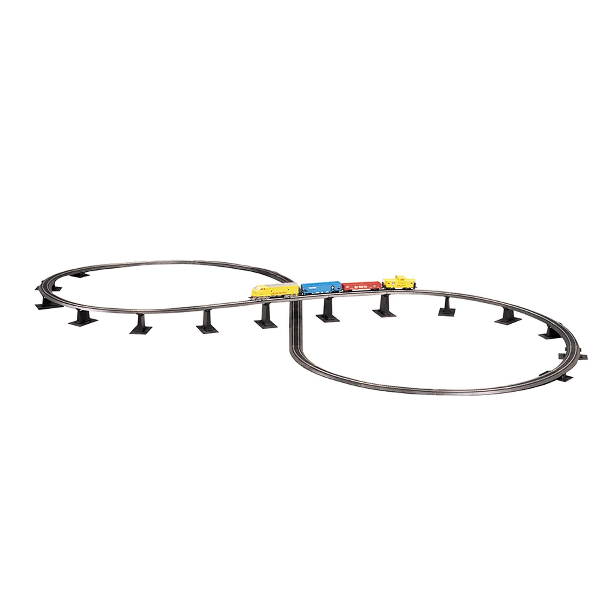 Railroading fun gets bigger and better with our steel alloy E-Z Track® Over-Under Figure 8 Track Pack! Create a giant 78" x 36" over-under “Figure 8” with the 14-piece graduated pier set, 20 pieces of 18" radius curved E-Z Track®, and 4 pieces of 9" straight E-Z Track® included in this track pack.