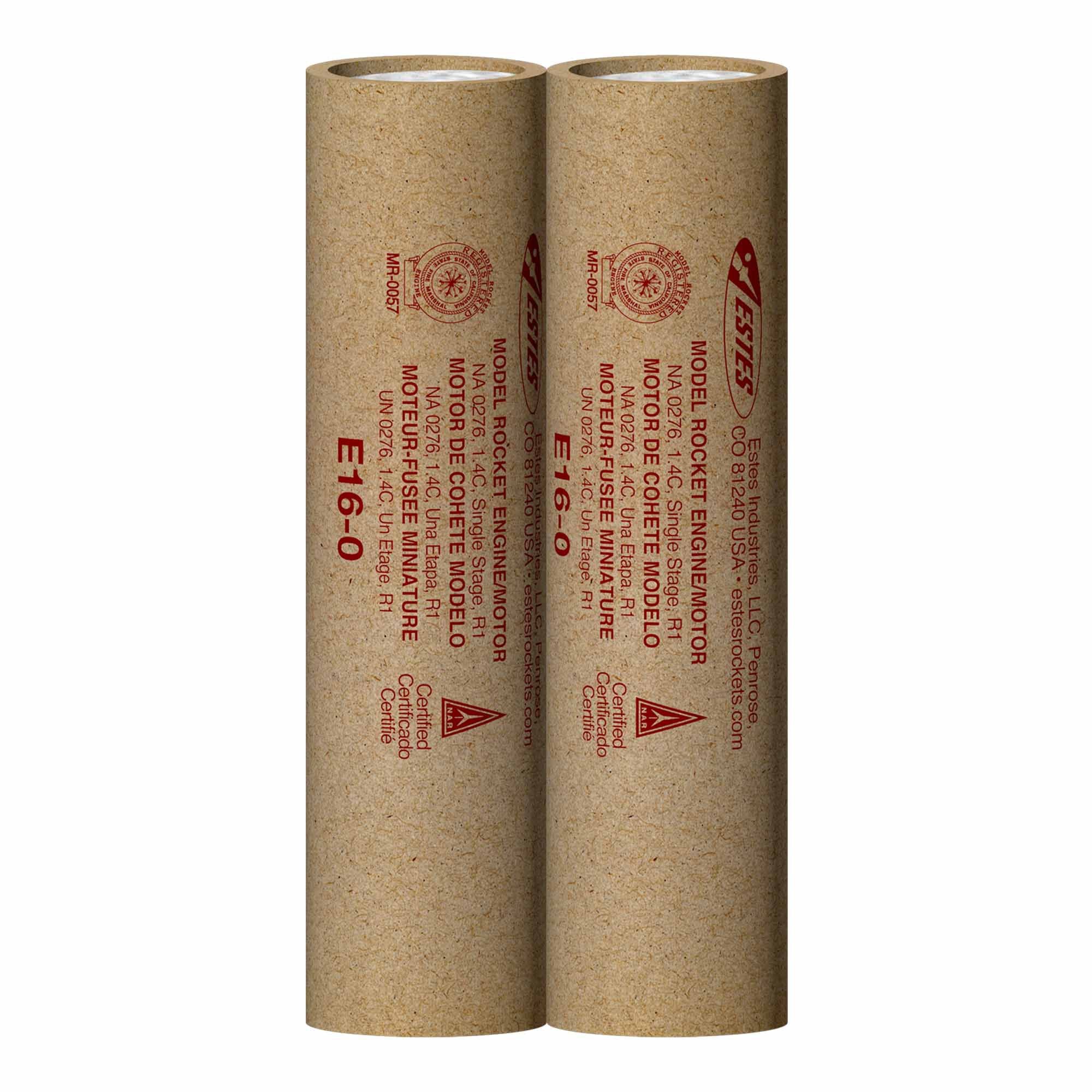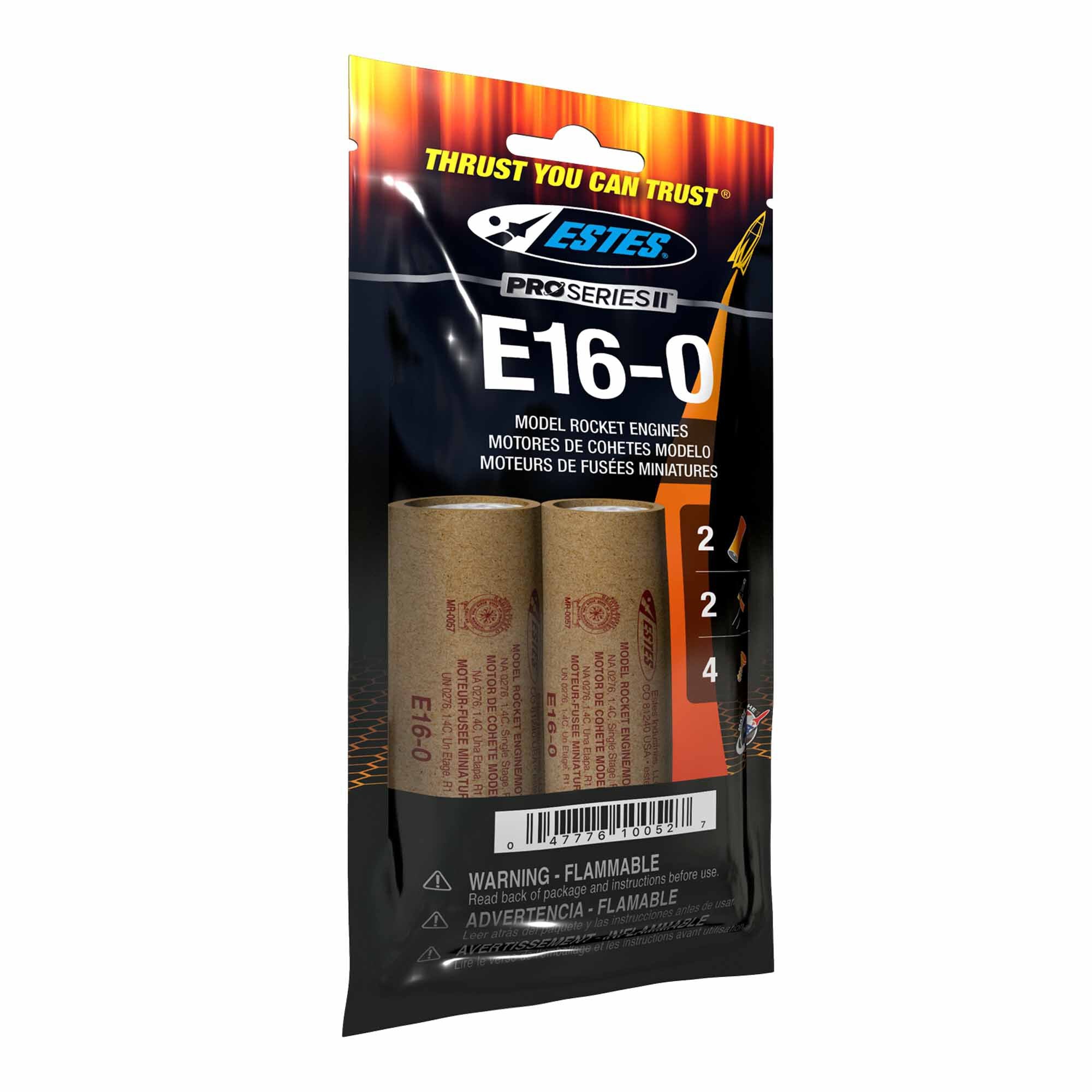 The E16-0 Engines (29 mm) by Estes Rockets are high-powered booster-stage engines designed to deliver exceptional thrust for multi-stage rockets. With a burn time of 2.09 seconds and a total impulse of 33.68 N-sec, these engines provide the initial boost needed to propel larger rockets like the Pro Series II So Long to incredible heights. Ideal for advanced rocketeers, the E16-0 engines ensure reliable and consistent performance, making them a perfect choice for ambitious launches and multi-stage experiments. Each pack includes two engines, starters, and plugs to power your next rocketry adventure.