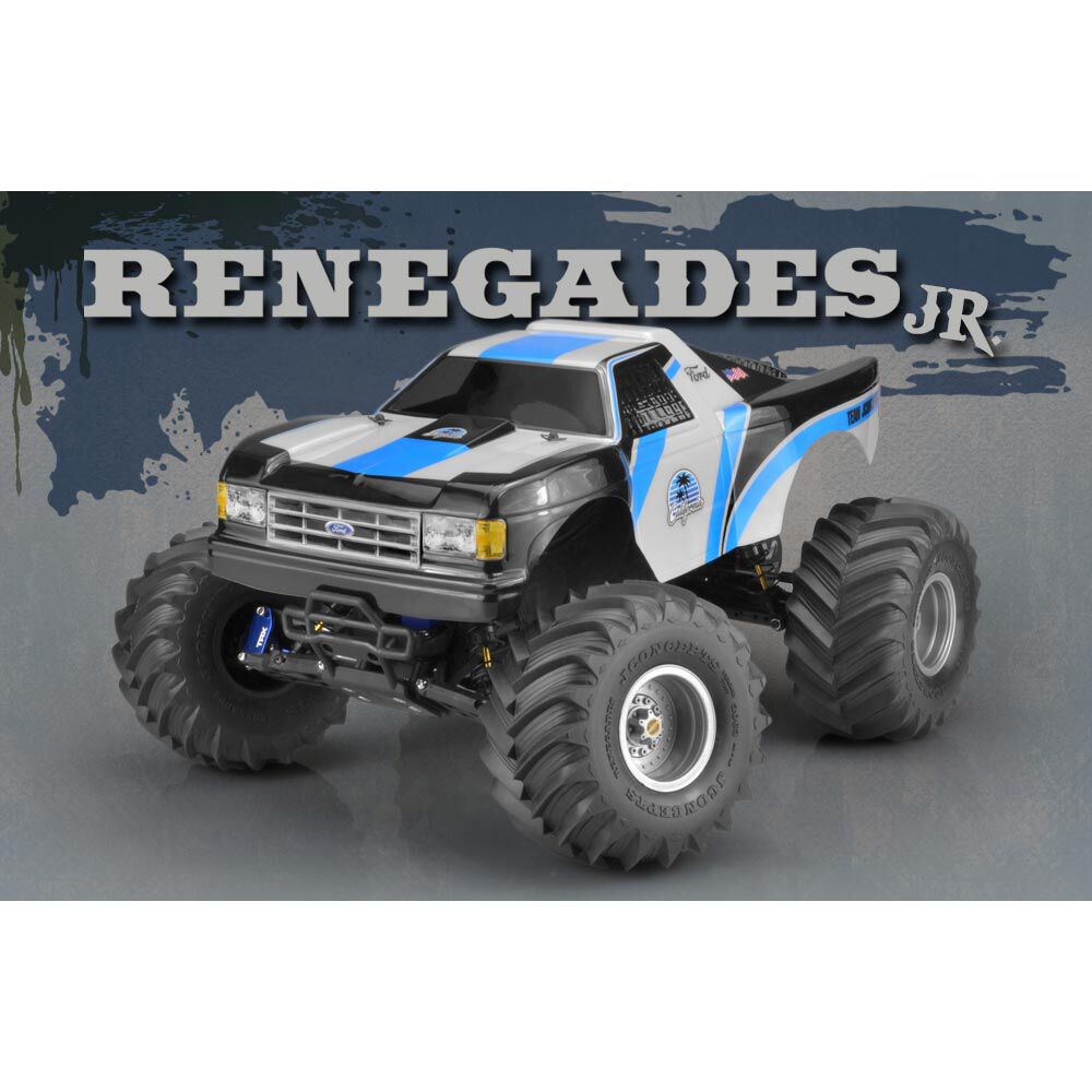 Renegades Jr is specifically designed to work with vehicles such as the Traxxas Stampede, Rustler, SMT10, and 2.2" based monster trucks in conjunction with JConcepts #3380 Midwest wheels.