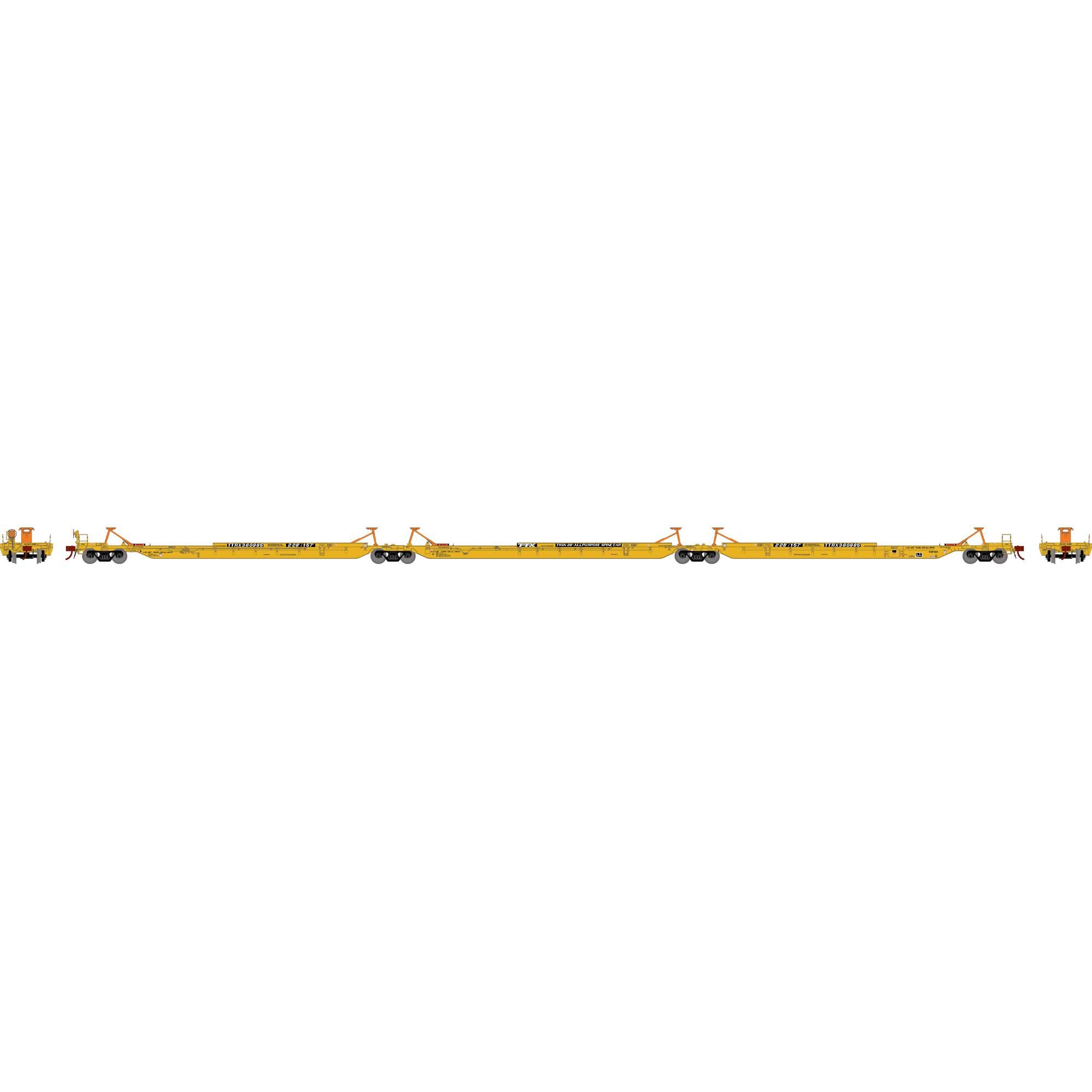 The prototype for our model is based on a Trinity-built car owned by the TTX Company. These 70-ton cars (TTX class RAF30A) numbered TTRX 360817-361116 first appeared on the rails in the late 1990’s. The Athearn model is faithful to the prototype allowing modelers to load a variety of trailers and containers.