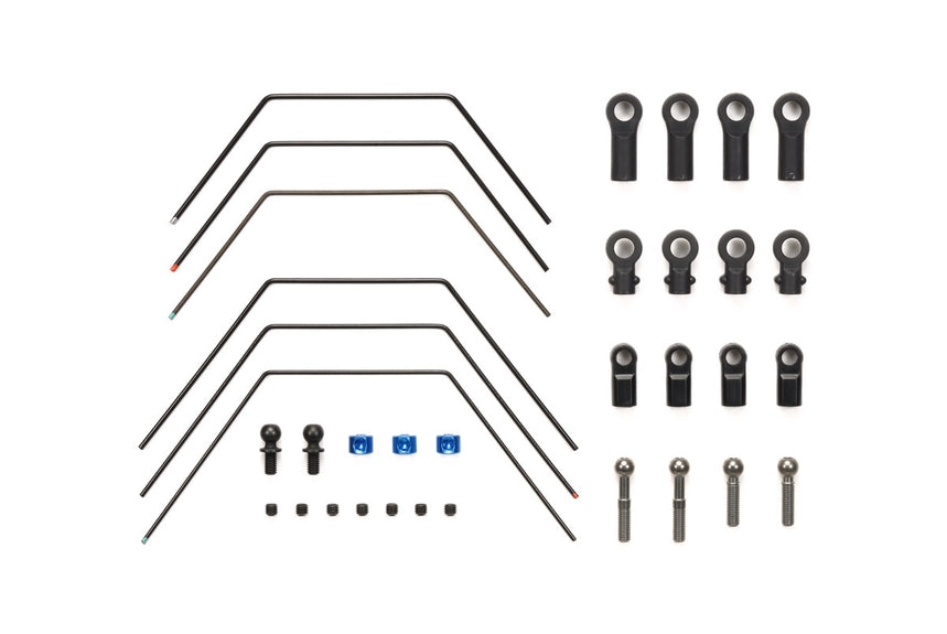 Fine-tune your TA-07 chassis setup using the stabilizers in this set, which features three different stiffnesses of soft stabilizer bar for both the front and rear of the car. It could gain you vital fractions of time on the track!