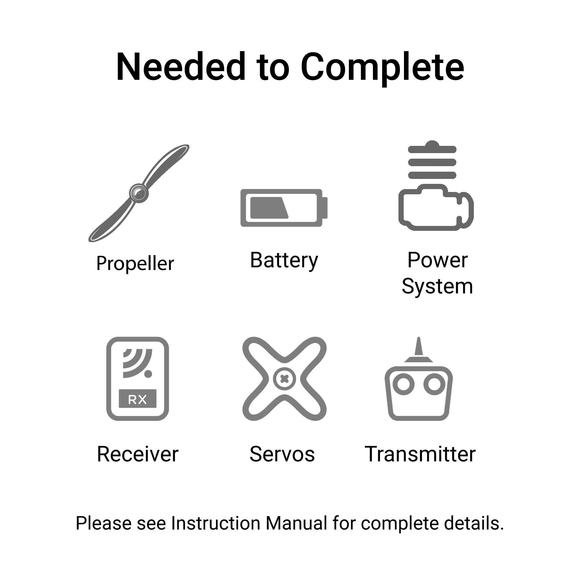 • Rugged fixed landing gear with 4-inch wheels and realistic shock-absorbing struts (included)