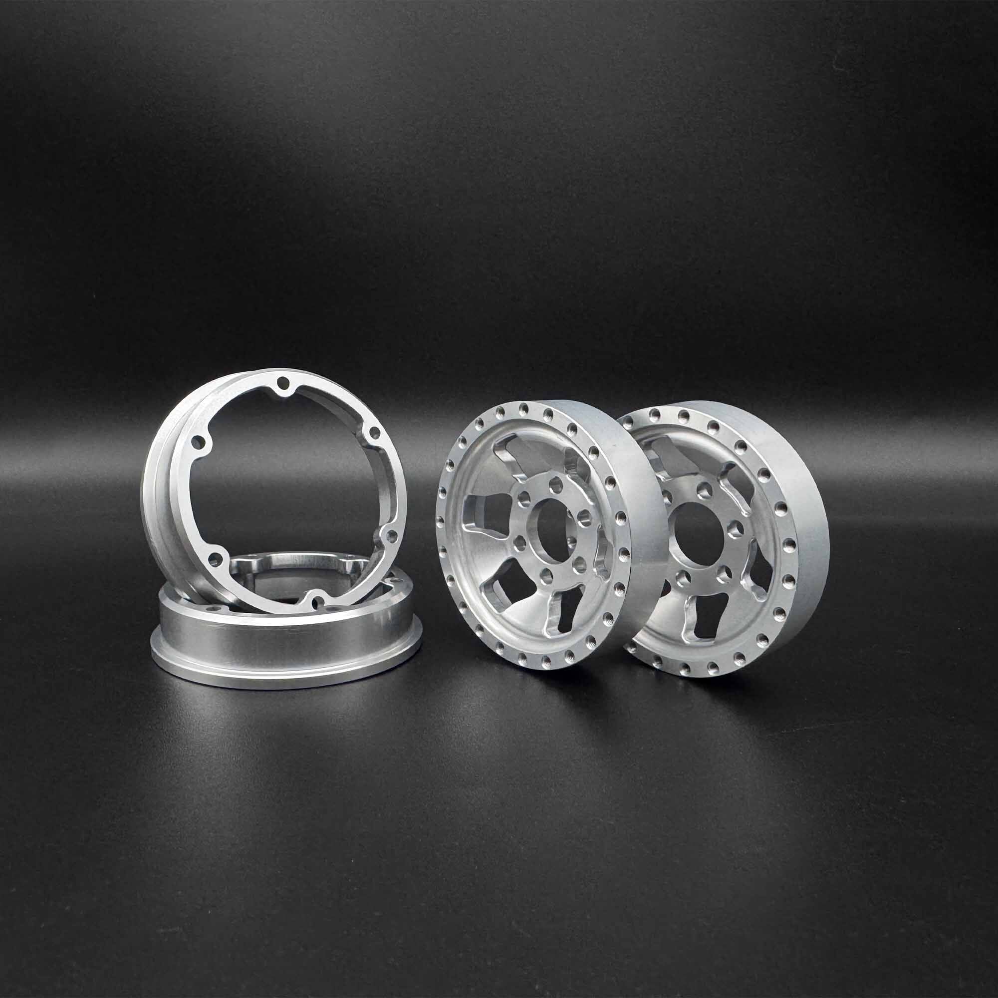 Introducing the Reefs RC 1.9 "GRANITE" machined aluminum Beadlock wheels! The wheel sets (sold in pairs) include machined aluminum hubs, black anodized machined beadlock rings, M2 and M2.5 stainless steel hardware and machined aluminum clamping rings.