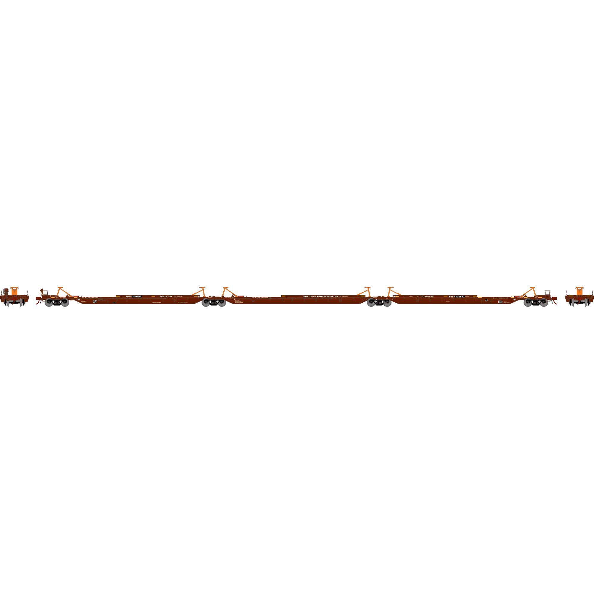 The prototype for our model is based on a Trinity-built car owned by the TTX Company. These 70-ton cars (TTX class RAF30A) numbered TTRX 360817-361116 first appeared on the rails in the late 1990’s. The Athearn model is faithful to the prototype allowing modelers to load a variety of trailers and containers.