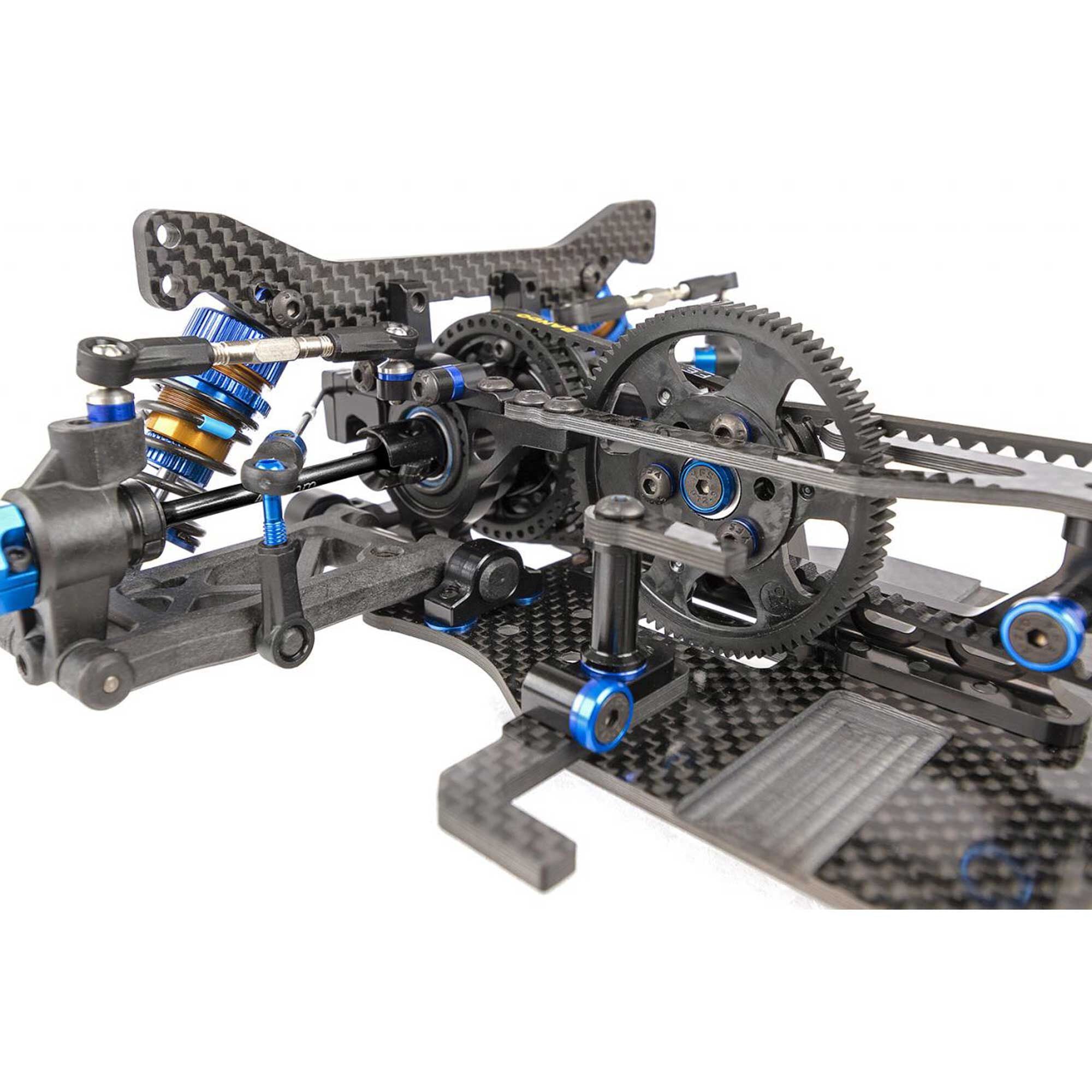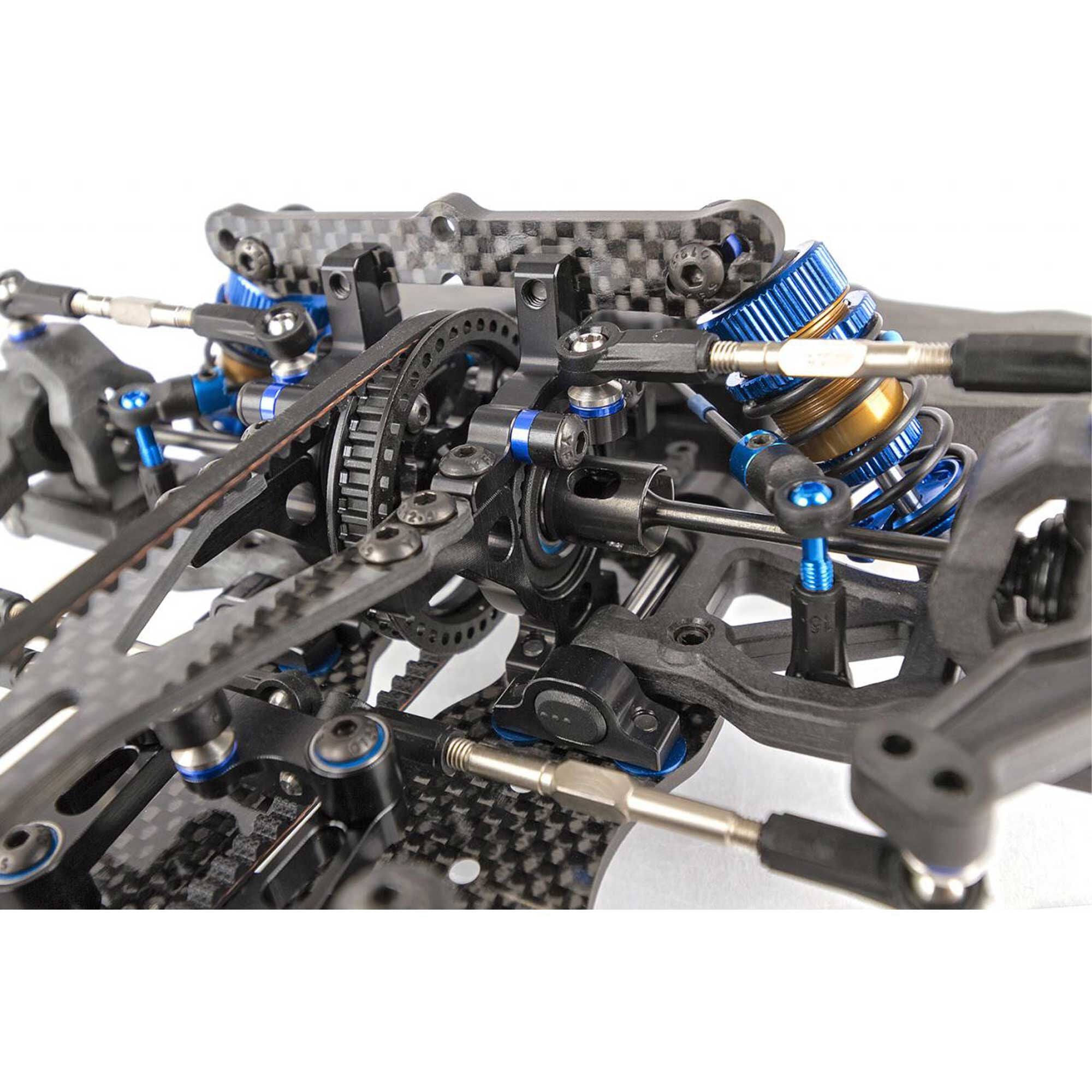 Due to ongoing R&D, photos may not match final kit. RC10TC7 Factory Team Kit shown on these pages equipped with items NOT included in kit: Reedy motor, battery, ESC, servo, receiver, wheels, tires, body, and pinion gear. Assembly and painting required.